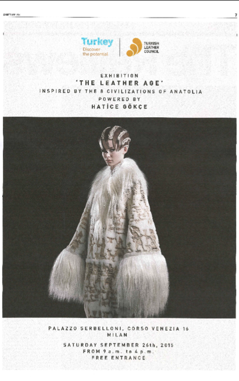 The scope was to start with the execution of the ‘The Leather Age, 8 Civilizations of Anatolia’ Exhibition to be held during Milano Moda Donna Fashion Week and under the patronage of Camera Della Moda Italiana to co-host and sponsor as part of the official calendar of the MF Week an amazing art meets fashion exhibition event ‘The Leather Age’ inspired by the 8 civilizations of Anatolia created for IHKIB and Turkish Leather Brands by the amazing Turkish designer Hatice Gökçe.